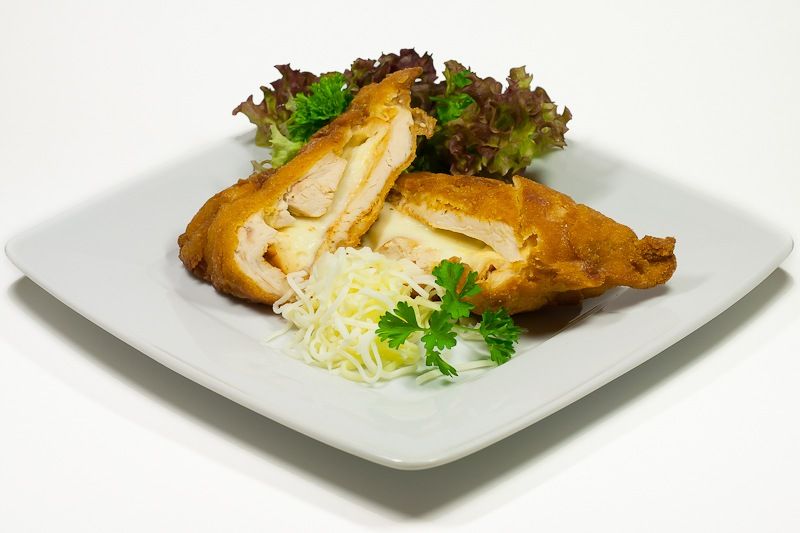 Sajttal töltött rántott sertéskaraj (köret nélkül) (kérésre csirkemellből készítjük)