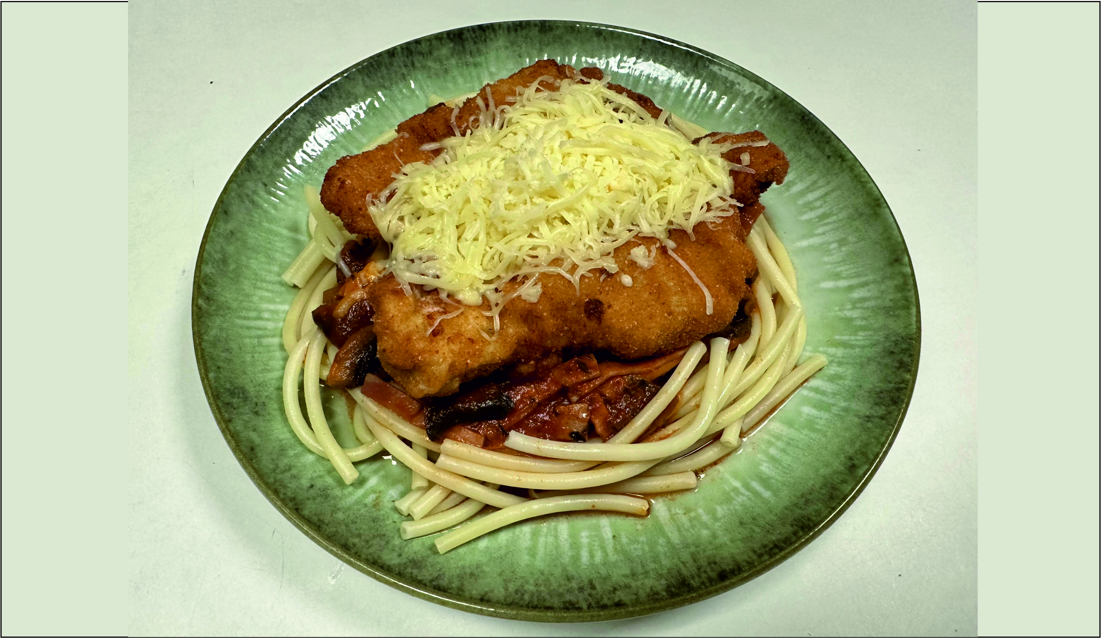 Milánói makaróni, rántott sertéskaraj, sajt