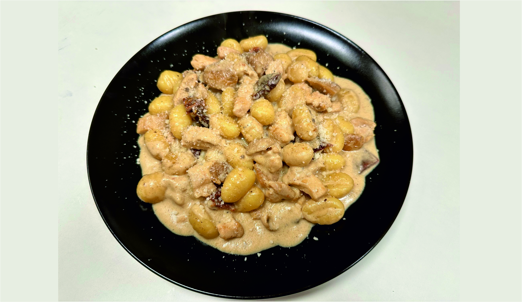 csirkemell, vargánya, tejszín, szárított paradicsom, gnocchi, reszelt parmezán